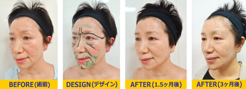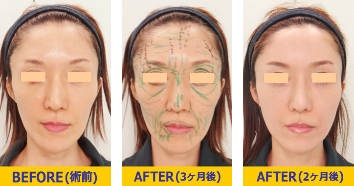当院のフルプレミアム☆フルセット注入技術は、お客様方のニーズに応えて当院で一から開発した他院とは全く異なるオリジナルの手法です。第一に、各個人で異なる肌質や加齢現象に合わせて、あらゆるシワ・溝・タルミ・陥凹部・左右差を反映した完全オーダーメイドデザインを施し、(注入しすぎても不足してもダメですが)生着率を予測しながら㎜単位・㎜以下単位で適量(生着率を予測しながら)を注入する匠職人技術を要します。